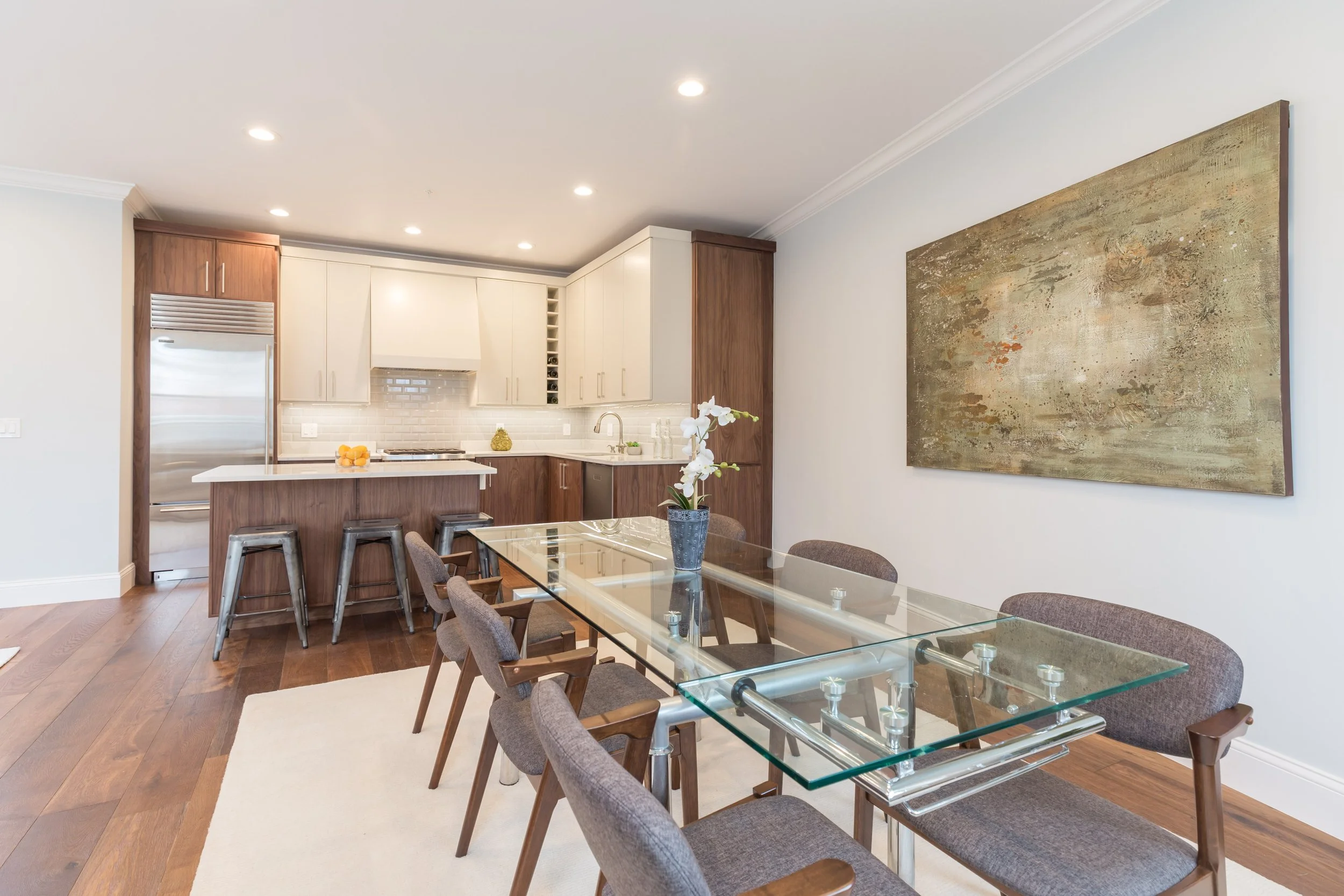 The interiors were crafted in a transitional style, pairing contemporary finishes with traditional details to create a timeless feel. Each unit features open layouts, custom millwork, designer kitchens, and generous windows that bring in abundant natural light. The goal was to strike a balance between elegance and everyday functionality, ensuring each residence is as practical as it is beautiful.
